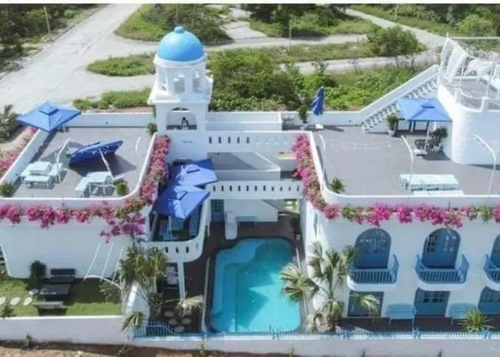 Santorini Ha Long Villa - Venue Travel poskytuje hostům sluneční terasu, patio a místo na piknik, a je 25-minutovou chůzí od Přístav Tuan Chau. Vila se nachází ve čtvrti Tuan Chau města Ha Long, 39 minut jízdy od letiště Mezinarodni letiste Cat Bi.